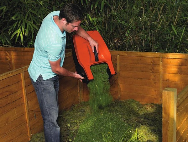 - Optimalizovaný sběrný koš o objemu 40 l sebere více trávy a jeho vysypání zabere méně času