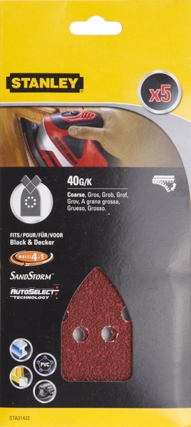 Brusné papíry děrované se suchým zipem - žehličkový tvar - vhodné pro Black+Decker multibrusku - X31432 / STA31432