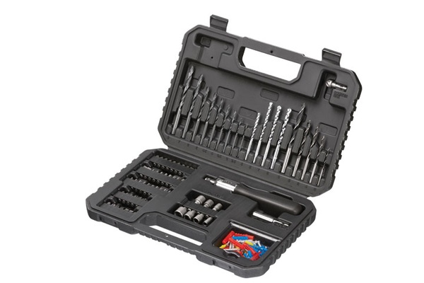 | Obsahuje | 120 dílná sada vrtáků, bitů, nástrčných klíčů, hmoždinek a vrutů s ráčnovým šroubovákem |
