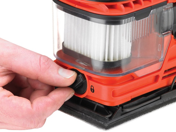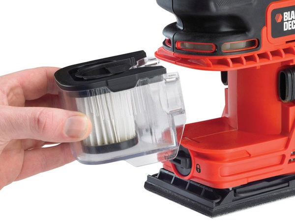 - DUOSAND™: První bruska pro 1/3 listu brusného papíru na světě* s duálním ventilačním systémem a s funkcí obtokového odsávání a zachytávání prachu zaručuje čistější a rychlejší broušení.